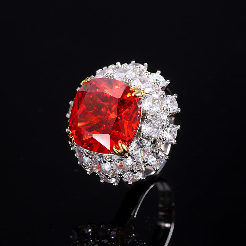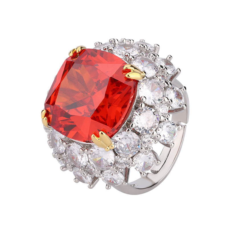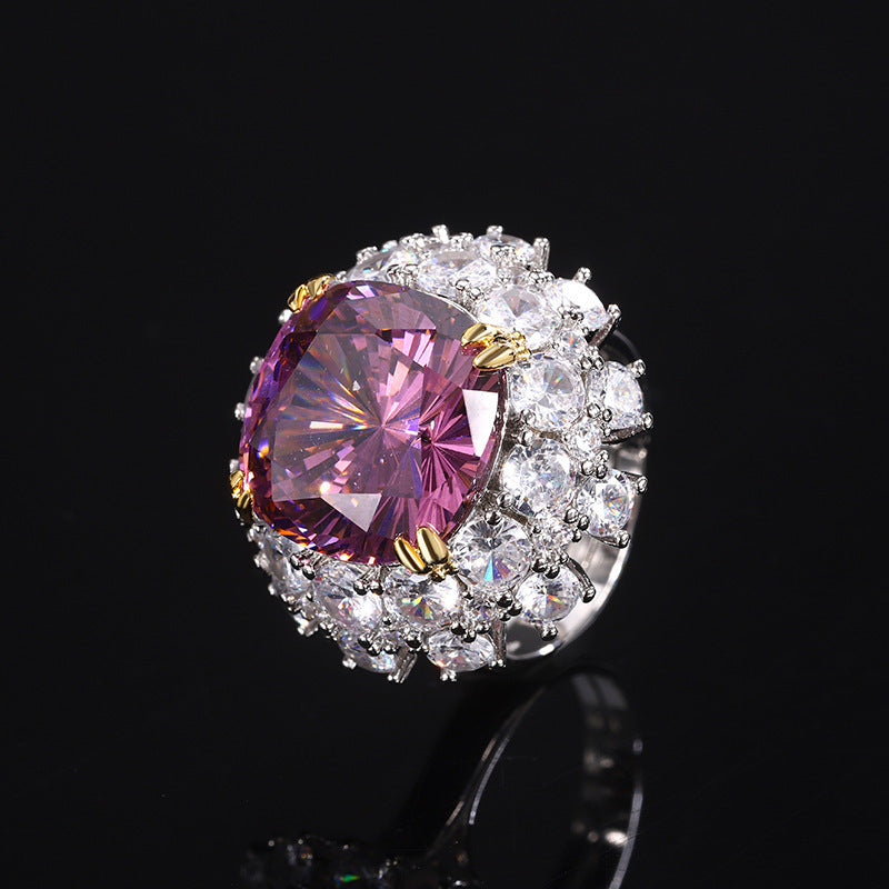 Inlaid Dried Rose Ring Bird's Nest Cut Sea Blue Zirconium